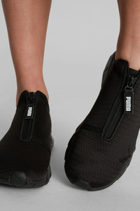 No laces. No problems. Weave Zip steps straight out of the boxing ring into the streets, delivering flexibility and an eye-catching lace-free design, with a chunky zip closure and boxing-inspired braided midsole. Always keep them guessing. FEATURES & BENEFITS - FLEXIBILITY: Braided midsole provides flexibility during training movements - FIT: Sock collar and knit upper offer secured fit during training movements - GRIP: Rubber outsole provides for maximum traction and durability DETAILS - Style: 193923_02 - Color: Puma Black-Puma Black - Premium knit upper - Easy slip-on style with sock collar - Zip closure - Braided boxing-inspired midsole design - Rubber outsole provides traction and grip - Webbing loop at heel for easy on/off - PUMA Formstrip overlay at sides - Embroidered PUMA Cat Logo at lateral toe