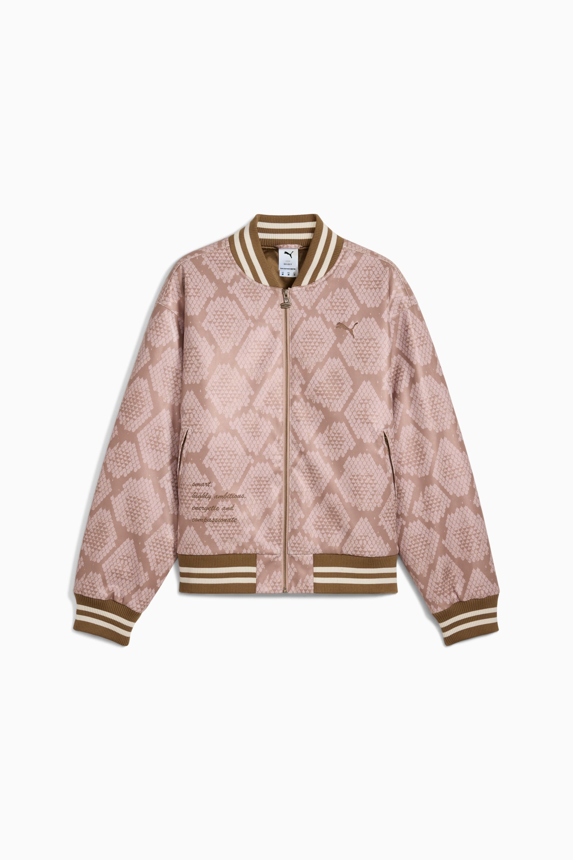 PRODUCT STORY Embrace the Year of the Snake with PUMA's latest streetwear essential. This jacket blends style and versatility, featuring bold graphics, sleek embroidery, and practical pockets. Perfect for any wardrobe, it's your new go-to for standout weekends. FEATURES & BENEFITS - warmCELL: Breathable cold weather technology designed to trap heat close to your body and keep you warm during exercise DETAILS - Style: 629418_97 - Color: Coconut Crush-AOP - Oversized fit - Tricot fabric - Standard jacket length - Full zip - Long sleeves - Zipped side pockets, Inner Pocket - All-over graphic print - PUMA branding details MATERIAL INFORMATION - LINING: 100% polyester - FILLING: 100% polyester - RIB: 91% polyester, 8% nylon, 1% elastane