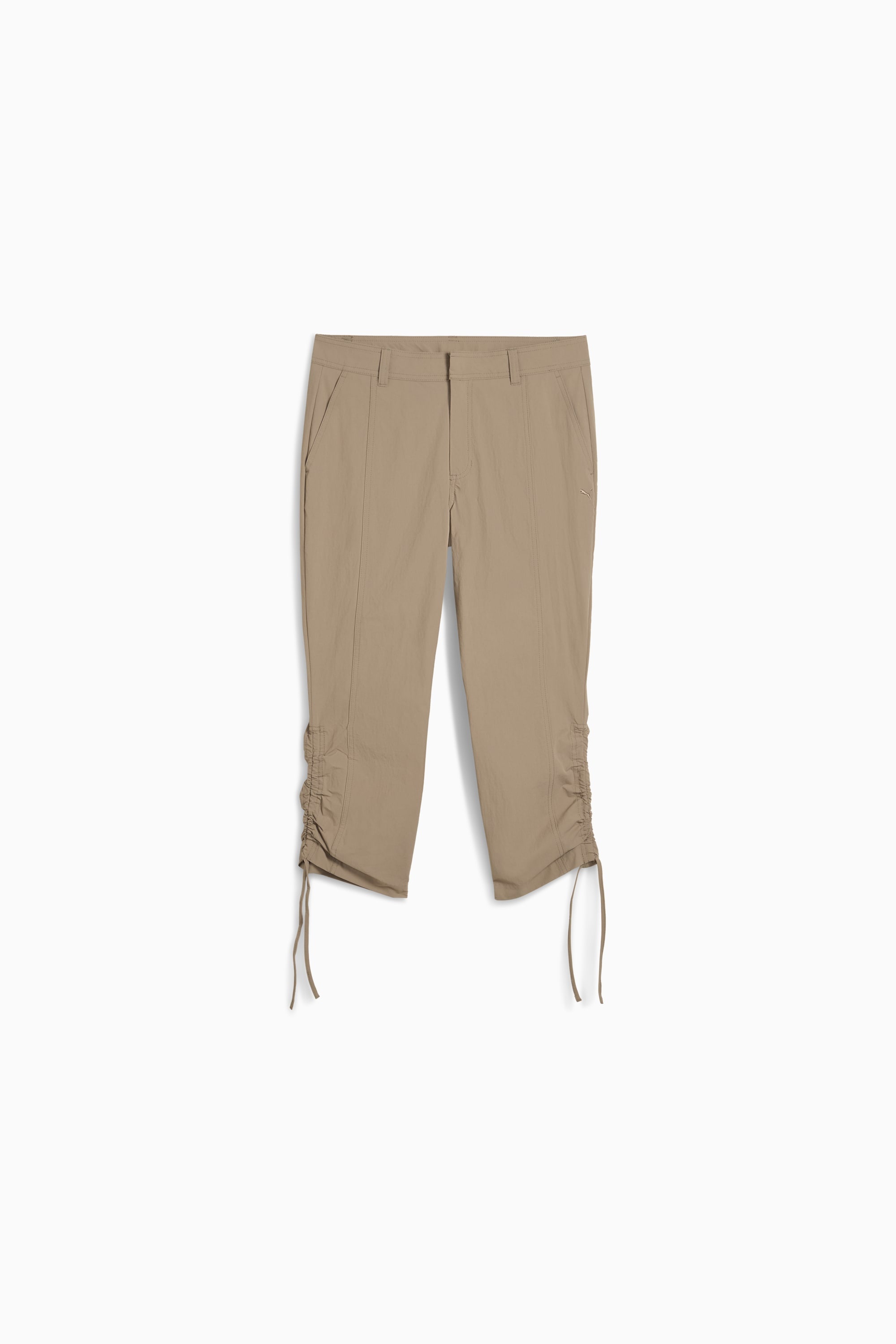 PRODUCT STORY Discover effortless sophistication with these capri pants. Part of the YONA collection, they blend premium materials and timeless colors for a clean, functional look. Thoughtful details make them your new go-to for elevated streetwear. PUMA perfection. FEATURES & BENEFITS - windCELL: Technology designed to protect against the wind and keep you comfortable during exercise - Water-repellent - Made with at least 90% recycled materials DETAILS - Style: 629388_83 - Color: Velvet Moss - Slim fit - Plain weave fabric - 3/4 length - Hem with side seam drawcords for adjustable fit - Medium rise - Waistband with snap button, zip closure and belt loops - Back Pocket, Side Pocket - PUMA branding details MATERIAL INFORMATION - Shell: 92% nylon, 8% elastane