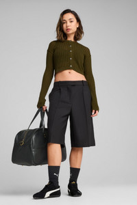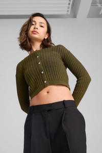 PRODUCT STORY Elevate your everyday look with this long sleeve knit top from PUMA's YONA collection. Crafted with premium materials and timeless colors, it offers a tailored approach to classic streetwear. Ribbed cuffs and waistband ensure a perfect fit for any laid-back day. FEATURES & BENEFITS - Made with at least 20% recycled cotton DETAILS - Style: 629383_85 - Color: Olive Drab - Slim fit - Sweater fabric - Cropped length - Crew neck - Button placket - Long sleeves - Ribbed neck, cuffs and hem - PUMA branding details MATERIAL INFORMATION - Shell: 64% cotton, 36% nylon - Collar: 64% cotton, 36% nylon - Rib: 56% cotton, 43% nylon, 1% elastane