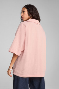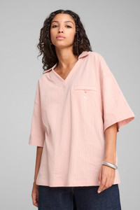 PRODUCT STORY Discover effortless sophistication in this oversized polo. Featuring premium materials, meticulous details, and timeless colors, it embodies PUMA's YONA collection - our elevated approach to classic streetwear. The PUMA Cat Logo embroidery and metal logo plate on the back add a touch of refined charm to your everyday look. FEATURES & BENEFITS - Made with at least 20% recycled cotton DETAILS - Style: 629386_91 - Color: Rose Quartz - Oversized fit - Single face jacquard material - Regular length - Collar - Short sleeves - Chest Pocket - PUMA branding details MATERIAL INFORMATION - Shell: 97% cotton, 3% elastane - Pocket Bag: 100% cotton