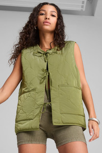 PRODUCT STORY Elevate your everyday with this reversible vest from PUMA's YONA collection; our elevated, tailored approach to classic streetwear. Crafted with premium materials and meticulous attention to detail, it features PrimaLoft® Black Insulation for warmth. Timeless colors and clean design make it a versatile wardrobe staple. FEATURES & BENEFITS - Made with 100% recycled material excluding trims & decorations DETAILS - Style: 629382_92 - Color: Kiwi Green - Relaxed fit - PrimaLoft® black insulation - Short jacket length - Tie closure - Sleeveless - Reversible - Patch Pocket - PUMA branding details MATERIAL INFORMATION - FILLING: 100% polyester - INNER SHELL: 100% nylon