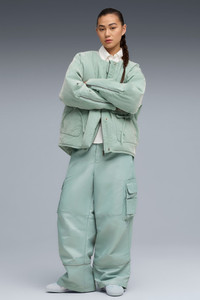 PRODUCT STORY Our YONA collection takes an elevated, tailored approach to streetwear. While the designs are inspired by fashion, we never overlook our sportswear roots. Premium materials and layered textures are combined with metallic finishes and all-over prints to create a fresh style uniform. FEATURES & BENEFITS - PrimaLoft® Black insulation DETAILS - Style: 632326_37 - Color: Light Moss - Fit: Relaxed - Main material: Twill weave - Neck: Collarless - Long sleeves with zip detail - Fastener: Full zip with hidden snap button placket - Length: Standard jacket - Front pockets with lace detail - Side pockets MATERIAL INFORMATION - Lining: 80% polyester, 20% cotton - Shell: 100% cotton - Filling: 100% polyester - Inner Pocket: 80% polyester, 20% cotton