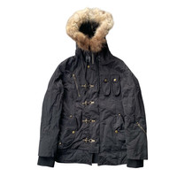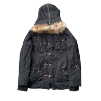 Rare Round Trip bondage-style utility jacket in black, featuring multiple hook-and-strap closures on the front and military-inspired pocket placements. The jacket includes a faux fur-lined hood with a vertical zipper detail, gold-tone hardware, and rivet accents along the back — giving it a distinct industrial/punk aesthetic. Ribbed cuffs and a structured silhouette complete the look. Size on tag: L Measurements (inches): • Pit to Pit: 21.5” • Length: 29.5” • Shoulder: 18” • Sleeve: 26” Fits slim for a size L — ideal for layering with streetwear or techwear fits. Gently used condition with natural signs of wear. A standout piece for fans of Y2K, Harajuku, or archival Japanese fashion. #RoundTripJapan #BondageJacket #Y2KStyle #JapaneseStreetwear #TechwearFits #ArchiveFashion #FurHoodJacket #HarajukuStyle #GrailedFinds #UtilityJacket #PunkAesthetic #StreetwearArchive #RareJacket #IndustrialStyle #Round Trip #Bondage Jacket #Japanese Brand #Techwear #Harajuku #Y2K Fashion #Archive #Utility Jacket #Streetwear #Rare #Fur Hood #Hook Closure #Punk Style #Industrial Fashion