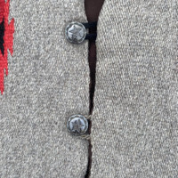 Authentic vintage Chimayo-style wool vest featuring striking Navajo-inspired red & black diamond motifs on both front and back. Crafted in the USA with premium wool and lined in a soft brown fabric for comfort. Classic Western Americana vibes — perfect for layering or standout styling. Condition: Gently used, no major flaws. Measurements (inches): • Pit to Pit: 18 • Length: 20 • Shoulder: 15 • Hem: 18 Tagged size: Fits like Small (check measurements) Ships fast & tracked. Open to reasonable offers. #Chimayo #VintageVest #NavajoStyle #MadeInUSA #HeritageWear #Americana #GrailedVintage #WesternStyle #SelvedgeStyle #Menswear #WoolVest
