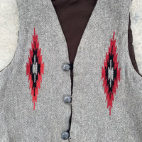 Native - Rare Vintage Chimayo Wool Vest - Navajo Pattern -