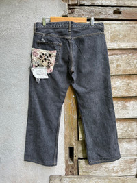 “Vintage” is a term that we don’t take lightly. Our shops only feature tees that have been aged no less than 15 years. PLEASE ASK ANY QUESTION BEFORE BUYING!!! THIS IS USED CLOTHING!!! PLEASE DONT EXPECTED IT TO BE LIKE NEW OR IN PRISTINE CONDITION!!!PLEASE REFER TO THE ACTUAL/MANUAL SIZE TAKEN!!! BRAND : Julius MADE : Japan Waist = (36) 18 “Inches Inseam = 29.5 “Inches Leg opening = 10 "Inches Knee = 9.5 "Inches Thight = 13.5 "Inches Front rise = 12 "Inches In a good vintage condition Used clothing Sold as it , Please double click on Photo for full spec (Kindly refer to the last photo)