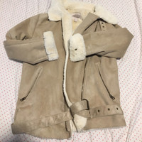 Forever 21 Shearling Faux Suede/Fur Biker Jacket in Beige
