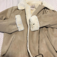 Perfect shearling jacket for fall and winter. Super comfy and timeless! The interior of the jacket is incredibly SOFT you won’t believe it! This one hugs you right in unlike most shearling jacket which comes with teddy fleece and can feel rough on the skin. Honestly the quality is beyond. Got this one some time ago and only worn 5 times at most. Excellent condition.