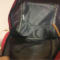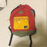 Lightweight backpack in red + yellow This backpack can hold a lot of stuffs, books, 15' inch laptop, etc. Inside there are some pockets that you can place you laptop and phone so they stay in place.