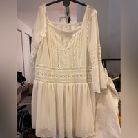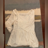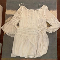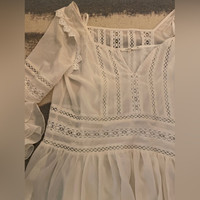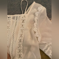 Feature lace detailing and sheer panels V-deck at front and square beck at the back (can be wear (or vice versa which ever way you prefer) Comes with a white slip dress that can be worn together or separately Even though it is size small I would say it fits more like a M/L with its loose fit silhouette Like new! Don’t remember I ever wear this except for try-on