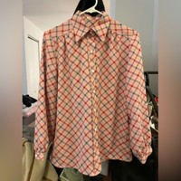 Vintage Diagonal Check Pink + Blue Button Down Shirt / Blouse