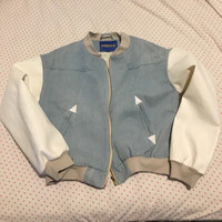 Vintage Faux leather Denim Bomber Cropped Jacket