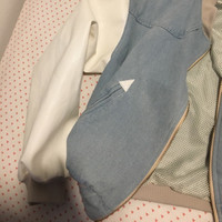 The center part is denim fabric and the sleeves are faux leather Retro design Mint condition