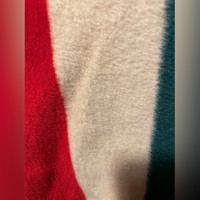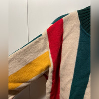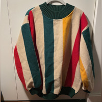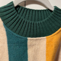 Ribbed crewneck and waistband Fleece exterior Colorful stripe in green, beige, yellow and red Oversized fit