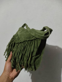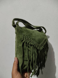 Vintage - Small Distressed Leather Fringe Bag Women Crossbody