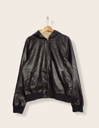 ZARA MAN LEATHER JACKET HOODIE