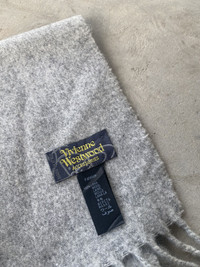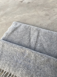 VIVIENNE WESTWOOD GREY FRINGE LOGO WOOL SCARF