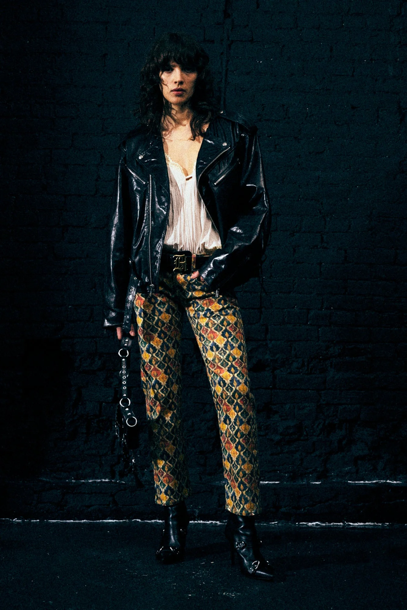 R13's iconic slim fit Boy Straight featuring a low rise and slim straight cropped leg made with printed ikat motif Japanese denim. FIND YOUR SIZE > DETAILS Color: Gold Orange Ikat 98% Cotton, 2% Polyurethane R13W0091-D388A Imported