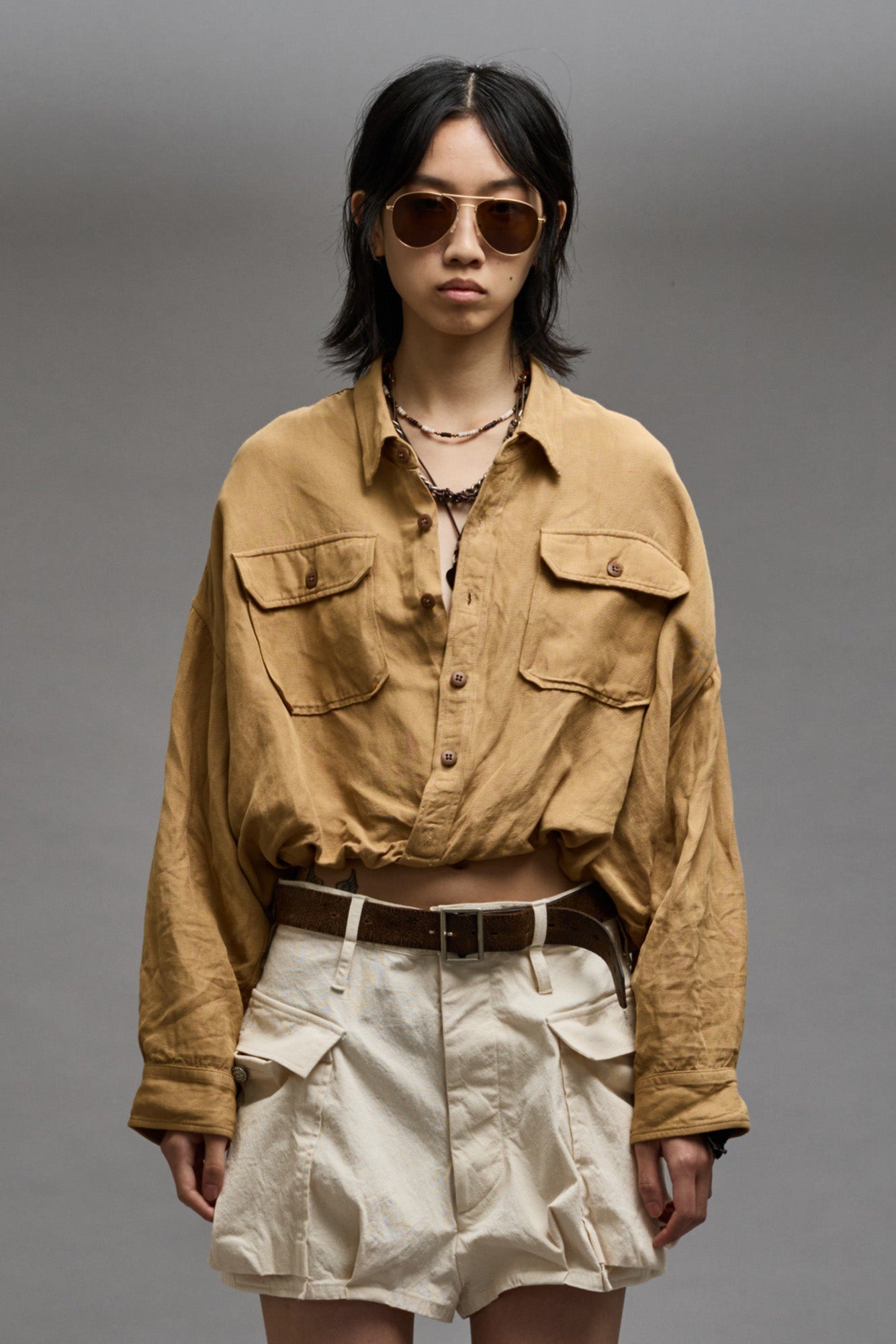 CROSSOVER UTILITY BUBBLE SHIRT - KHAKI
