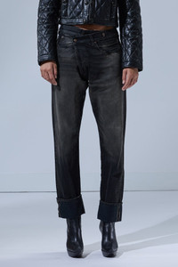 The Crossover is R13's original asymmetric jean, an iconic straight-leg style that speaks for itself. Built with 13 oz. black Italian rigid selvedge denim with a dark black wash and mild wear pattern. DETAILS Made in Italy Color: Phantom Selvedge Black 100% Cotton R13WD193-D360A