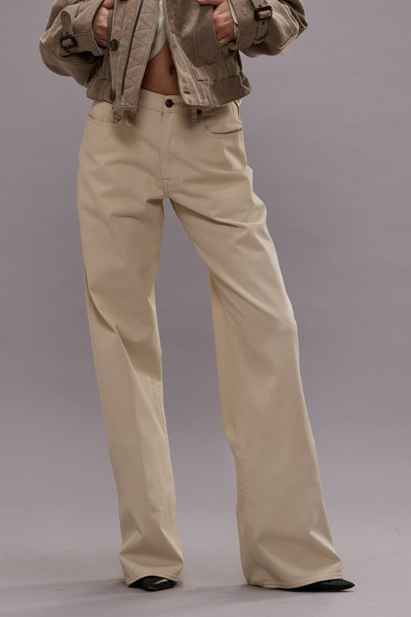 Relaxed wide leg jean built with white 12 oz. mercerized Japanese selvedge denim for a firm sheen and texture. DETAILS Color: Bone White Selvedge 100% Cotton R13WD0380-D335 Imported