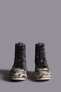 A twist on R13's iconic Kurt High Top Sneaker, featuring an extended top and a distressed leather construction. DETAILS Heel Height: 2.5", 65 mm Platform Height: 1.6", 4 cm Shaft Height: 5.5", 14 cm Based on size 10; slight variations may occur by size. Color: Distressed Black Body: 100% Leather, Sole: 100% Rubber R13WS057-219AB Imported