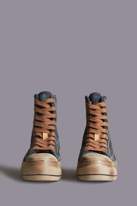 A twist on R13's iconic Kurt High Top, featuring an extended top and a washed navy suede construction. - Color: Washed Navy Suede - Body: 100% Suede, Sole: 100% Rubber - R13WS057-186AB - Imported