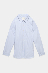 This style runs slightly large. If in between sizes, we recommend sizing down. - Classic drop neck shirt - Front pocket/ button up - Slightly oversized - Blue/white pinstripe - 100% Cotton - Model is 5’11” and wearing size M - Bust 34”; waist 24”; hips 35” - Machine wash cold, Do not tumble dry - Imported - R13W7469-302