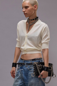 Wool cashmere blend elbow sleeve cardigan with a tapered hem for a cinched dramatic opening. DETAILS Color: Cream 100% Merino Wool R13WY303-Y097A Imported