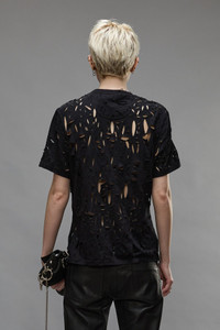 Classic Boy T shredded all over and finished with a black garment dye treatment. - Color: Black - 100% Cotton - R13WK245-K001A - Imported