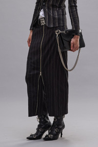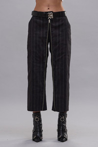 Trouser pant featuring a zip between the legs for flexible styling. DETAILS Made in Italy Color: Black Silver Pinstripe 78% Linen, 17% Polyamide, 5% Elastane R13WR575-R716A