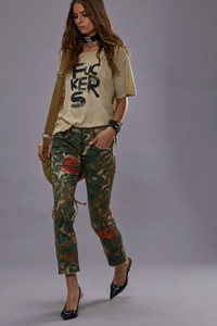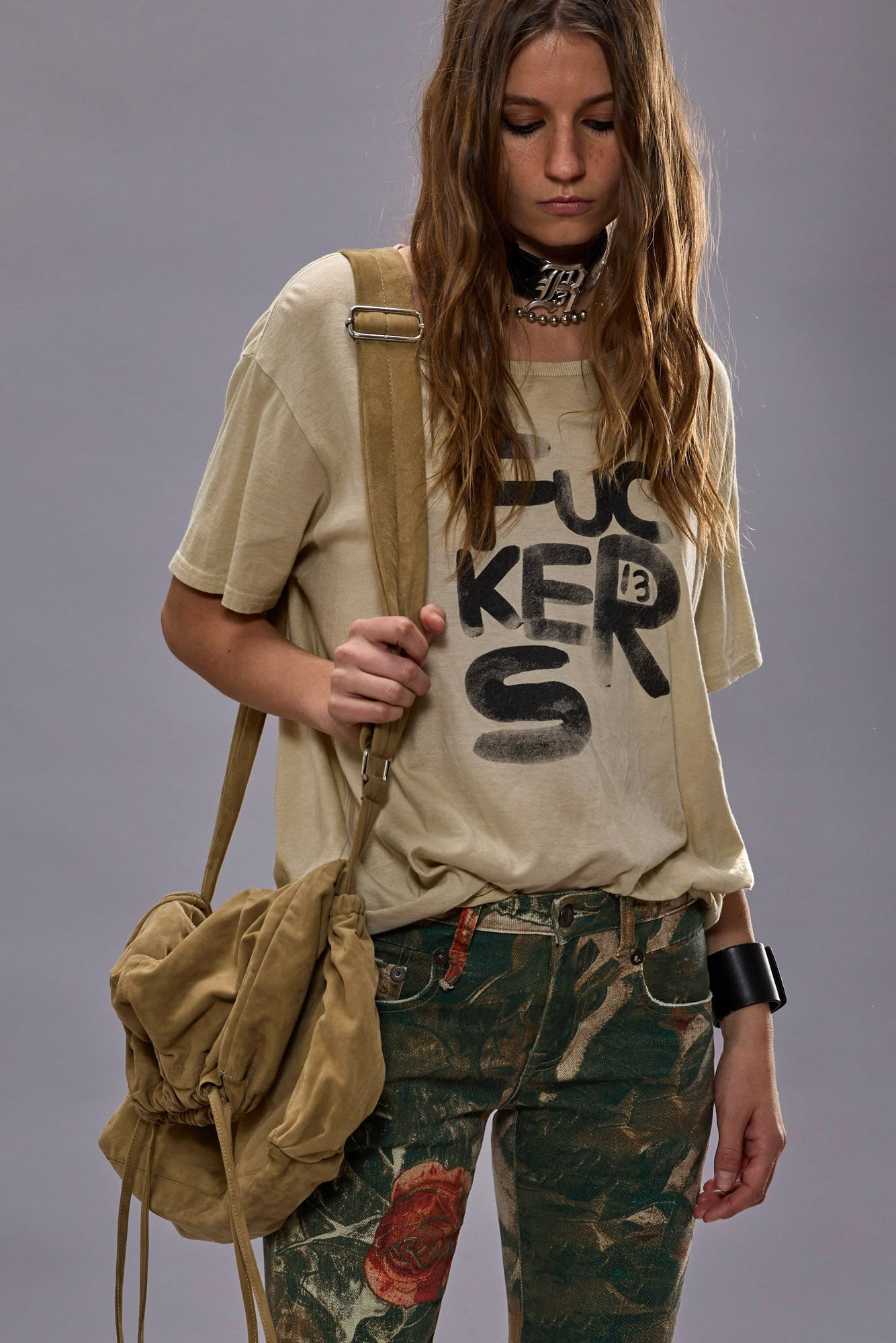 Cotton cashmere blend Boy T featuring a "Fuckers" graphic. DETAILS Color: Khaki 95% Cotton, 5% Cashmere R13WK001-121BO Imported