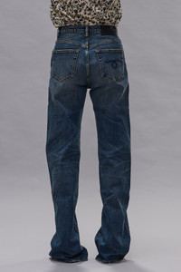 Fitted high rise slim leg jean featuring a subtle flare for a long, lean silhouette made with mid-weight comfort stretch Japanese indigo denim and treated with a dark indigo wash and a gentle wear pattern. DETAILS Color: Melvin Blue Stretch 98% Cotton, 2% Polyurethane R13W7020-D246A Imported
