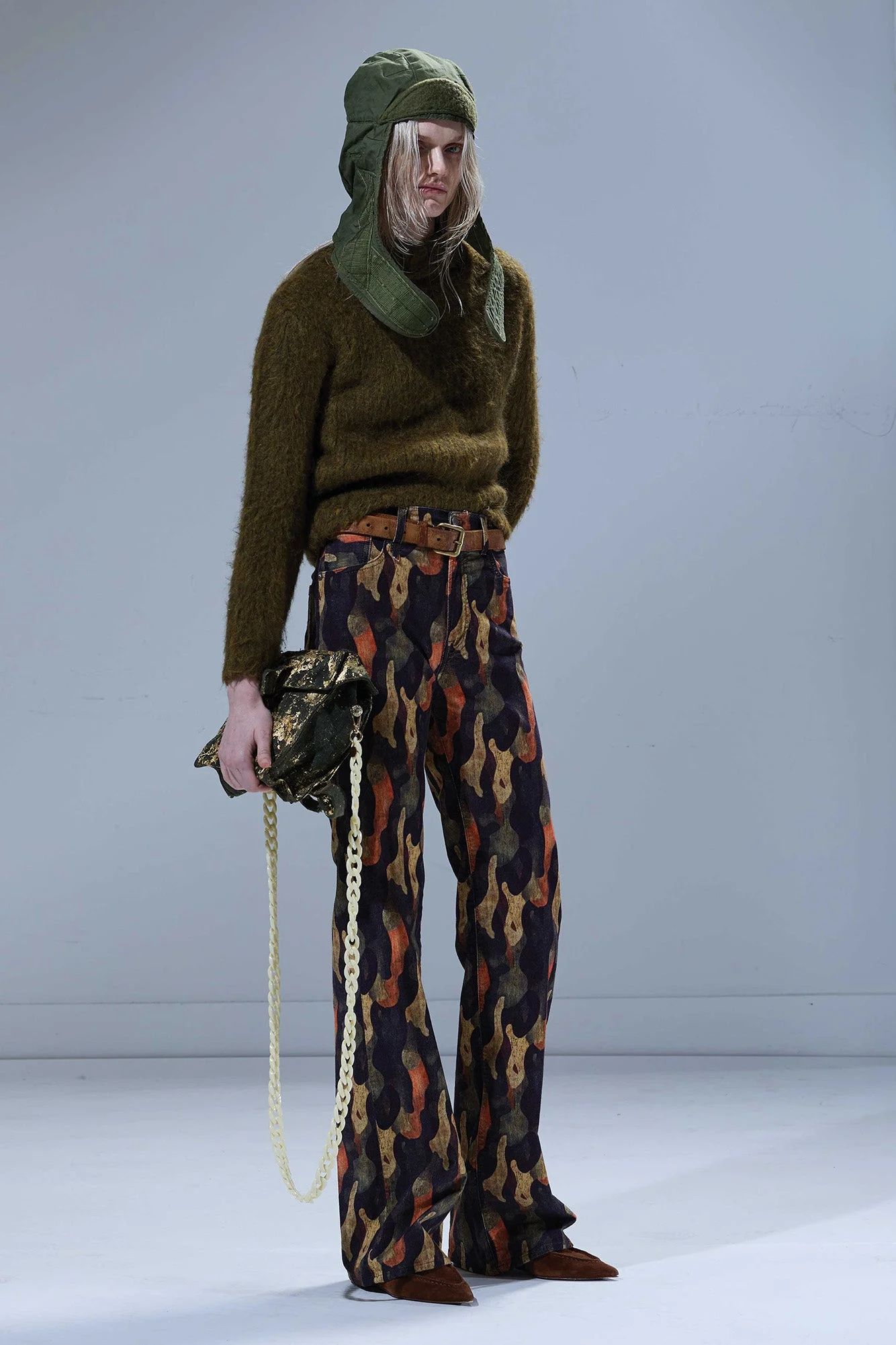 Fitted high rise slim leg jean featuring a subtle flare for a long, lean silhouette. M ade with printed French stretch velour. FIND YOUR SIZE > DETAILS Made in Italy Color: Wild Camo Velveteen 98% Cotton, 2% Polyurethane R13W7020-D365A