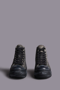 Classic Kurt high top with a signature chunky sole and built from distressed black leather. DETAILS Heel Height: 2.5", 65 mm Platform Height: 1.6", 4 cm Shaft Height: 4.1", 10.5 cm Based on size 10; slight variations may occur by size. Color: Distressed Black Body: 100% Leather, Sole: 100% Rubber R13S5029-S219X Imported