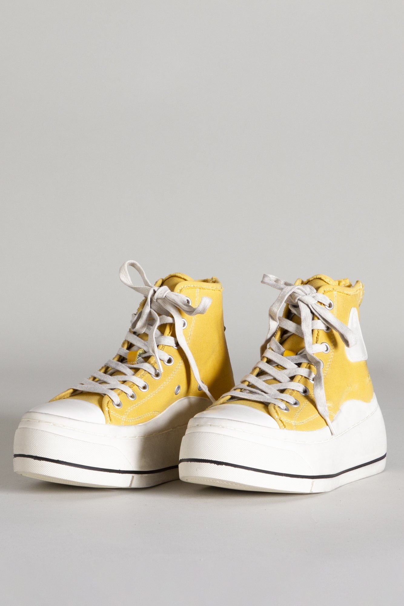 Classic Canvas high-top sneaker with lace-up closure, hand stitched platform and toe cap. Color: Gold Round leather white/white cap toe and white platform Lace-up closure Signature R13 logo on side Imported R13S5029-004 DETAILS Heel Height: 2.5", 65 mm Platform Height: 1.6", 4 cm Shaft Height: 4.1", 10.5 cm Based on size 10; slight variations may occur by size.