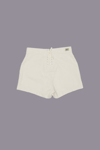 High rise relaxed shorts built with Japanese slubby twill, featuring a seamless outseam and gusset at the back with lacing details. DETAILS Color: Natural Slubby Twill 100% Cotton R13WD159-D297A Imported
