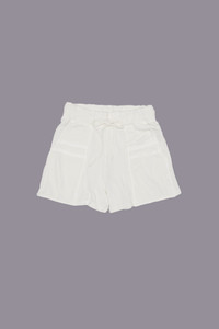 Relaxed sweatshort featuring three pockets overlayed across each other, with pleating at the bottom for expanded volume and a drawstring for fit adjustment. DETAILS Color: Ecru 100% Cotton R13WK277-K001B Imported