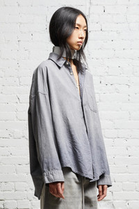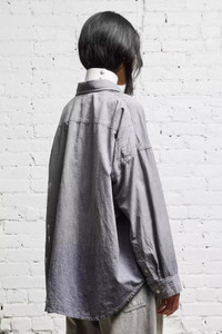 Oversized denim shirt built from Japanese black on ecru chambray and featuring a mildly worn black wash. - Color: Black Chambray - 100% Cotton - Reese is 5'11" and wearing size M - Bust 30"; Waist 23"; Hips 34" - R13WD170-D135A - Imported