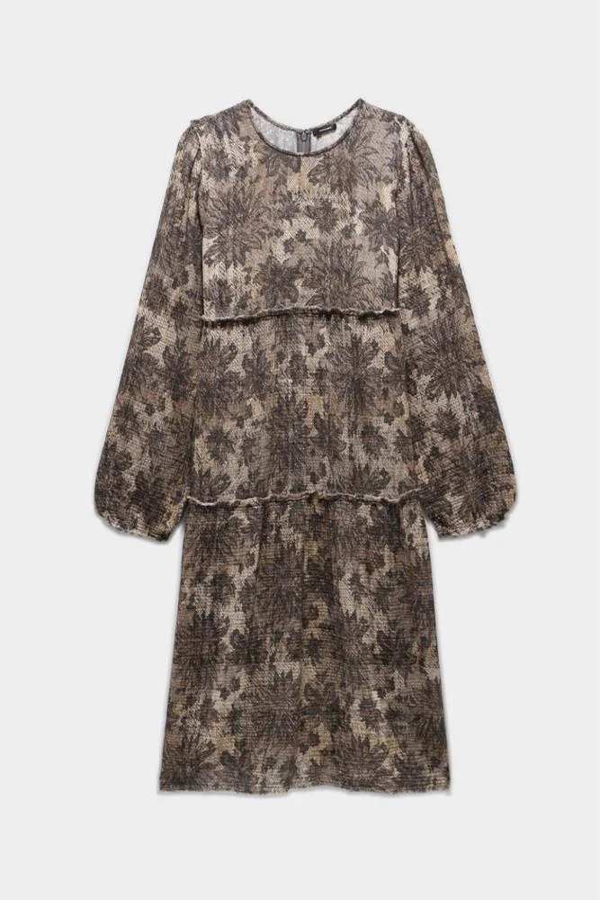 LONG SLEEVE SHREDDED RELAXED MIDI - GREY LACE IMITATION | R13