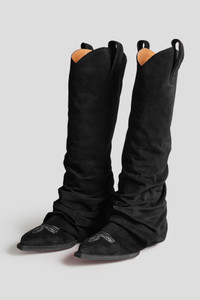 R13's iconic sleeved cowboy boot, elevated and reformatted for Fall/Winter with exquisite black suede. - MADE IN ITALY - Color: Black Suede - 100% Leather - R13S0107-S096C