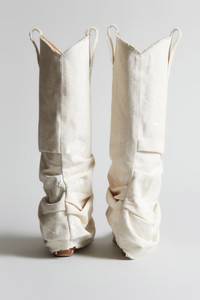 R13's classic sleeved cowboy boot, featuring a splattered canvas sleeve and embroidery at the toe. - MADE IN ITALY - Color: Paint Splatter Canvas - Shell: 100% Natural Canvas, Body: 100% Leather - R13S0107-S094A