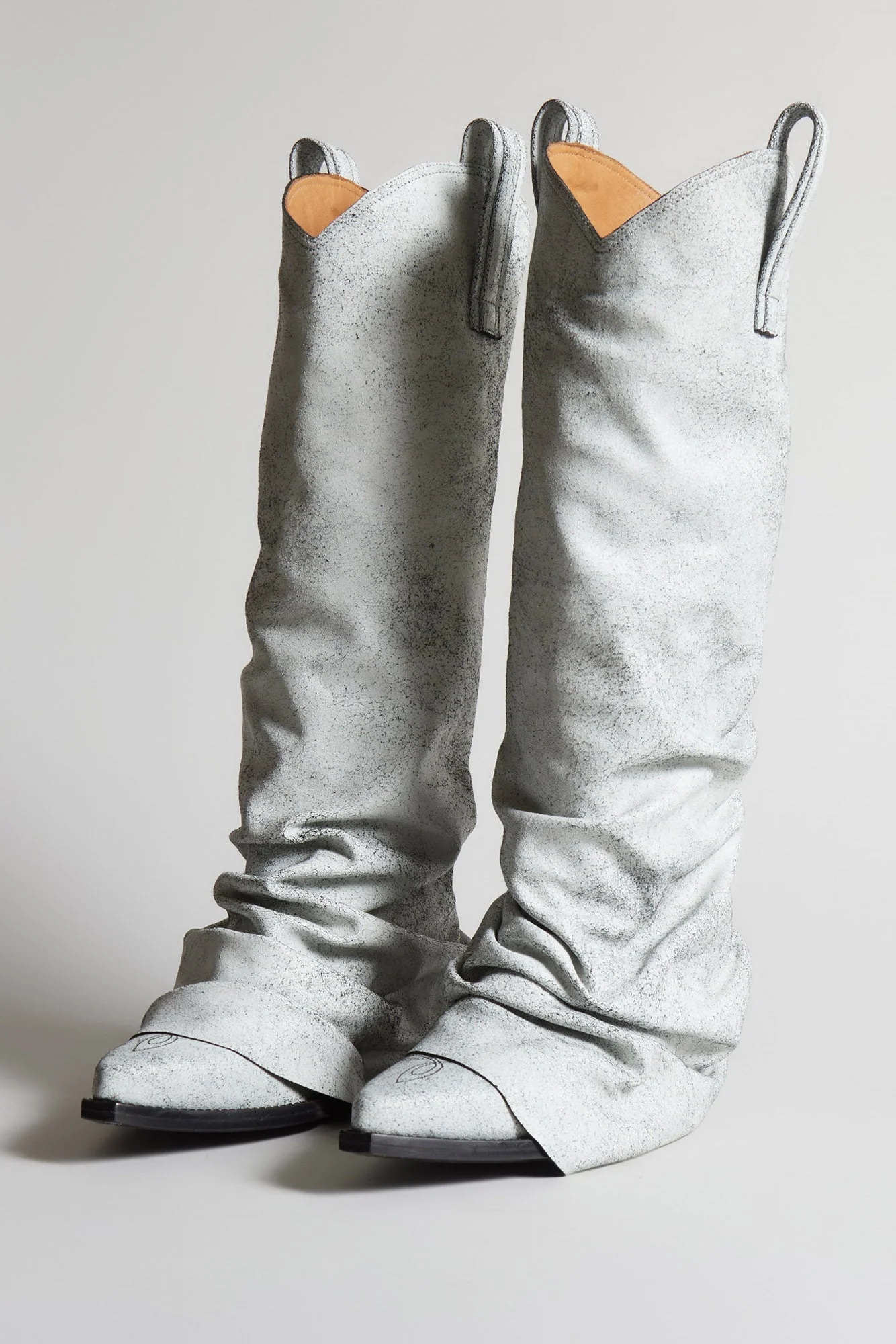 MID COWBOY BOOTS WITH SLEEVE - CRACKLE WHITE