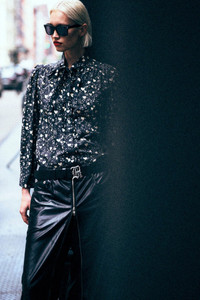 Fitted button up shirt featuring blouse details with a tie in place of the standard collar. Built with Italian cotton voile and a heart print. DETAILS Made in Italy Color: Mini Hearts on Black 100% Cotton R13WR604-R703B