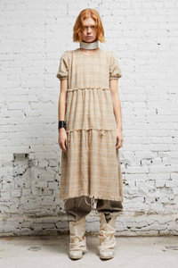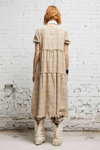 Midi dress featuring a relaxed fit and shredding at the seams. Built with Japanese cotton and a bleached, overdyed effect. - Color: Overdyed Khaki Plaid - 100% Cotton - Julia is 5'10" and wearing size M - Bust 32"; Waist 24"; Hips 35" - R13WR045-R260D - Imported