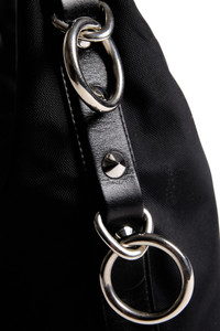 Small nylon hobo bag with harness embellishments, removable leather strap, interior logo pocket and removable chain. DETAILS Made in Italy Width: 12", 31 cm Height: 10", 24 cm Depth: 5", 11 cm Strap Drop (Leather): 12", 29 cm Strap Drop (Chain): 18", 46 cm Features: Interior zip pocket Color: Black Body: 100% Nylon, Strap: 100% Leather R13WA062-A010
