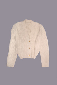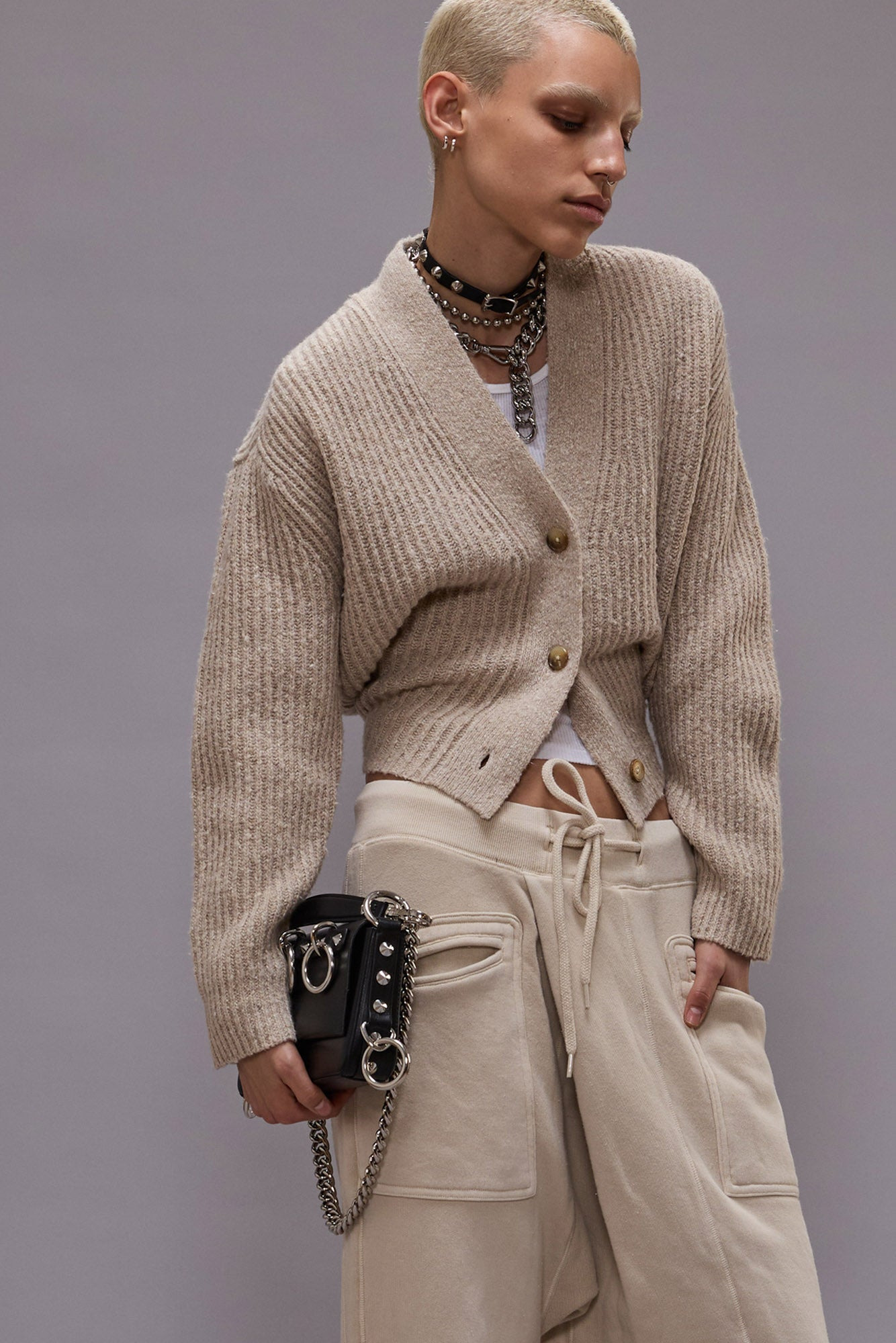 Ribbed split hem cardigan built from wool blend fabric. DETAILS Color: Oatmeal Tweed 60% Wool, 20% Polyamide, 20% Viscose R13WY296-Y211A Imported
