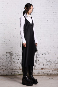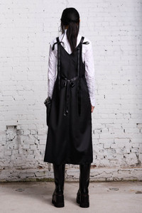 The grunge slip is a minimalist take on the classic slip dress, here tastefully accented by supple satin tapes and a worsted wool construction. - Made in NYC - Color: Black and Satin - 100% Worsted Wool - Reese is 5'11" and wearing size M - Bust 30"; Waist 23"; Hips 34" - R13WR219-R295A
