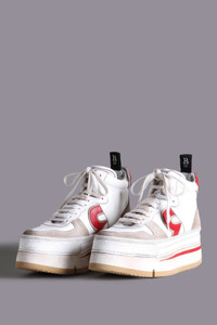 This style runs slightly large. If in between sizes, we recommend sizing down. - MADE IN ITALY - Color: Red and White - All Leather Basket Ball High Top with Almond Toe - Lace-up closure - Signature R13 logo on Back Tab - R13WS024-S035A